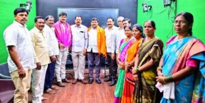 శేరిలింగంపల్లి, జూన్ 14 ( నేటి సత్యంప్రతినిధి): శేరిలింగంపల్లి నియోజకవర్గానికి చెందిన బిసి సంఘం అధ్యక్షులు అడ్వకేట్ బండారి రమేష్ యాదవ్, ప్రధాన కార్యదర్శి పటేల్ కృష్ణ అధ్వర్యంలో ఎమ్మెల్సీ తీన్మార్ మల్లన్నని, తెలంగాణ బీసీ పోలిటికల్ జెఏసి కోఆర్డినేషన్ కమిటీ చైర్మన్ సుదగాని హరిశంకర్ గౌడ్ లని కలిసి బి.సి ఉద్యమాన్నికి సంపూర్ణ మద్దతుగా ఉంటామని తెలియజేశారు. ఈ సందర్బంగా ఎమ్మెల్సీ తీన్మార్ మల్లన్న మాట్లాడుతూ.. డివిజన్ ల వారిగా కమిటి వేయాలని నాయకులకు పిలుపునిచ్చారు. బీసీ ల రాజ్యాధికార కోసం చేసే పోరాటంలో మీరందరూ ముందు వరుసలో ఉండాలని నాయకులను కోరారు. ఈ కార్యక్రమంలో బీసీ పోలిటికల్ జెఏసి నాయకులు బందారపు నర్సయ్య, బీసీ నాయకులు నిజాంపేట మాజీ ఎంపీటీసీ కె.సురేష్ యాదవ్, శేరిలింగంపల్లి మహిళా కో ఆర్డినేటర్ కె లలిత రాణి, శేరిలింగంపల్లి ఉపాధ్యక్షులు ఏం.నర్సింగ్ మదిరాజ్, కొండాపూర్ బీసి సంఘం అధ్యక్షురాలు బి.విజయలక్ష్మి, కొండాపూర్ ప్రధాన కార్యదర్శి వై రాజు, సెక్రెటరీ శ్రీనివాస్ ఎస్. 111డివిజన్ అధ్యక్షురా లు యు.సంగమ్మ, ఈసీ మెంబెర్ జి.మంగు బాయి, తదితరులు పాల్గొన్నారు.