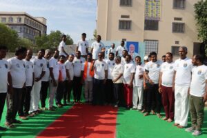 *మునగనూరులో అంతర్జాతీయ యోగా దినోత్సవం* మునగనూరు: 21 జూన్ నేటి సత్యం ప్రతినిధి మిమిక్రీ యాకన్న : తుర్కయాంజల్ మున్సిపాలిటీలోని మునగనూర్ గ్రామం శాంతిని కేతన్ స్కూల్ ప్రక్కన యోగా దినోత్సవ కార్యక్రమం నిర్వహించారు.ఈ కార్యక్రమం లో మహేశ్వరం జిల్లా సంఘచాలక్, మననీయ మల్ రెడ్డి బల్వంత్ రెడ్డి,ముఖ్య అతిధిగా మాజీ ఎంపీ Dr. బూర నర్సయ్య గౌడ్ పాల్గొని, యోగాసనాలు వేశారు. ఆయన మాట్లాడుతూ… యోగ మానసిక శారీరక దృఢత్వాన్ని పెంచడానికి ఉపయోగపడుతుందని, 175 దేశాలలో యోగాకు గుర్తింపు తీసుకురావడానికి కృషిచేసిన ప్రధాని మోడీకి కృతజ్ఞతలు తెలిపారు. కార్యక్రమంలో మునిసిపల్ BJP అధ్యక్షులు నరసింహ రెడ్డి, బోసుపల్లి ప్రతాప్, కొత్త రాంరెడ్డి, బచ్చిగళ్ల రమేష్, పురుషోత్తం, తుళ్ళ నరసింహ గౌడ్, కార్తీక్ నోముల, అనిల్ కడారి, బల్దేవ్ రెడ్డి, నాగరాజు అరని, జ్ఞానేశ్వర్, నవీన్, మల్లిక్, జగన్, బాలకృష్ణ గౌడ్, తదితరులు ఈ కార్యక్రమంలో పాల్గొన్నారు.