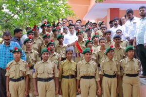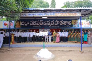 సోమవారం జిల్లా కేంద్రంలోని జిల్లా పరిషత్ ఉన్నత పాఠశాల మైదానంలో పీఎం శ్రీ పథకం లో ఉత్తమ పాఠశాలల ఎన్నిక కాబడిన సందర్భాన్ని పురస్కరించుకొని ఏర్పాటు చేసిన సమావేశానికి పాఠశాల ప్రధానోపాధ్యాయురాలు శ్రీలత అధ్యక్షత వహించగా ముఖ్య అతిథిగా హాజరైన ఆయన మాట్లాడుతూ విద్యార్థులను తీర్చిదిద్దడంలో ఆధ్యాపకుల పాత్ర కృషి ఎంతో ఉంటుందని అన్నారు. ఎన్ఎస్ఎస్ విద్యార్థులు తనకు ఘన స్వాగతం పలికే సందర్భం చూస్తే తన చిన్ననాటి జ్ఞాపకాలు గుర్తుకు వచ్చాయని వారిని అభినందించారు. విద్యార్థులు ఒక లక్ష్యాన్ని ఏర్పాటు చేసుకొని ముందుకు సాగాలని కోరారు పాఠశాలల బలోపేతంతో పాటు ఆధ్యాపకుల కొరత ఉపాధ్యాయులకు పదోన్నతులు కల్పించడం జరిగిందని గుర్తు చేశారు .