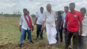 ఆ భూములను పరిశీలిస్తున్న సిపిఐ జాతీయ కార్యదర్శి కామ్రేడ్ కే నారాయణ గారు.