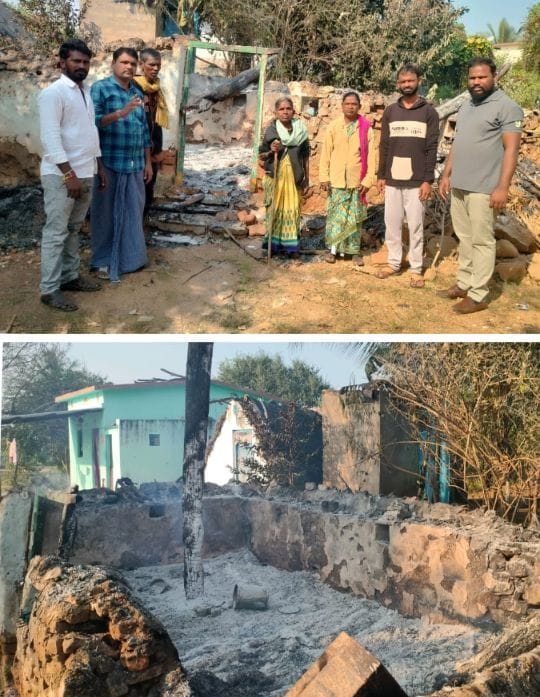 పూరి గుడిసెలో నివాసముంటున్న ఎస్సీ సామాజిక వర్గ కుటుంబం పై పగ పట్టిన గుర్తుతెలియని దుండగులు చేసిన దుశ్చర్యకు నివాస పూరి గుడిసె దగ్ధమై పుట్టపాక నిరంజన్ ఆయన కుటుంబ సభ్యులు నిలువలను నీడలేని పక్షులై ఆశ్రయము కొరకై దిగ్గు తోచని స్థితిలో బజారుపాలైన దురదృష్ట సంఘటన ఇది.