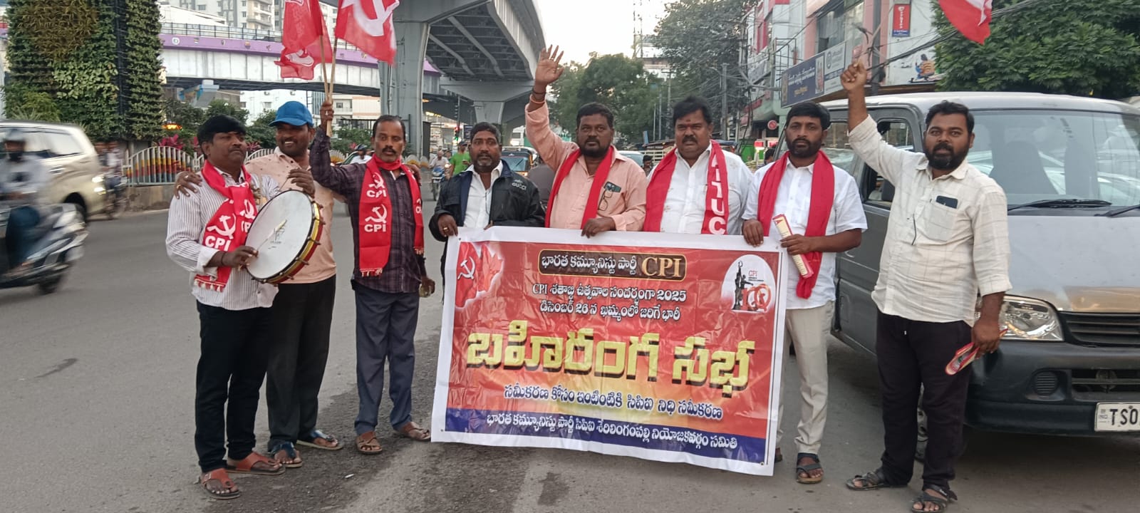 భారత గడ్డపై సిపిఐ కి వందేళ్లు భారత కమ్యూనిస్టు పార్టీ 100 సంవత్సరాల ముగింపు ఉత్సవాలు 2025 డిసెంబర్ 26న భారీ బహిరంగ సభ. ఈ సభకు శేర్లింగంపల్లి ఏరియా నుండి పాల్గొని విజయవంతం చేయవలసిందిగా కోరుతూ పార్టీ ని ధికి. విరాళాలు ఇవ్వాల్సిందిగా విజ్ఞప్తి. ఈ కార్యక్రమంలో సిపిఐ రాష్ట్ర సమితి సభ్యులు టి రామకృష్ణ. సిపిఐ శేర్లింగంపల్లి నియోజకవర్గ కార్యదర్శి కే చందు యాదవ్. ఏ ఐ టి యు సి. శేర్లింగంపల్లి నియోజకవర్గం అధ్యక్షులు తుపాకుల రాములు. సిపిఐ శేరిలింగంపల్లి నియోజకవర్గ సహాయ కార్యదర్శులు. ఎం వెంకటేష్.j శ్రీనివాస్. ప్రజానాట్యమండలి అధ్యక్షులు కూన సుధాకర్. కే ఖాసీం ఎస్ కొండలయ్య B నారాయణ