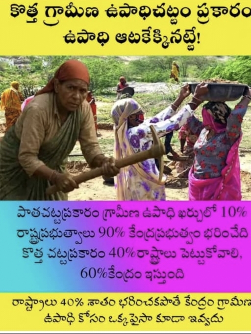 కోవిడ్ సమయంలో పట్నం నుండి తిరిగి గ్రామాలకు వస్తే ఉపాధే కోట్లాదిమందిని కొంతైనా ఆదుకుంది. ప్రత్యేకించి గ్రామాల్లో ఉన్న శ్రామిక వర్గానికి ఒకే చోట పనిచేసే అవకాశం సంవత్సరంలో కొన్ని రోజులైనా వచ్చింది. ఇది రూరల్ ప్రోలిటేరియట్ పనిలో ఐక్యతకు, క్రమానికి సానుకూలత. కానీ, మోడీ ఉపాధి స్థానంలో తీసుకొస్తున్న కొత్త బిల్లు లక్ష్యం, కారణాలు, అందులో పొందుపర్చిన షెడ్యూల్లోని తొమ్మిదవ పాయింట్లో స్పష్టంగా చెప్పబడ్డాయి. ”సంవత్సరానికి ప్రతి వయోజనుడికి ప్రస్తుతం ఉన్న వంద రోజుల పనిని నూట ఇరవై ఐదు రోజులకు పెంచడం, వ్యవసాయ సీజన్లో రైతులకు కూలీలు అందుబాటులో ఉండడానికి అరవై రోజుల పాటు ఉపాధి పనిని నిషేదించడం, ఉపాధి ఖర్చులో కేంద్రం ఇస్తున్న తొంభై శాతం వాటాను అరవై శాతానికి తగ్గించడం. అలాగే రాష్ట్రాల వాటాను పది శాతం నుండి నలభై శాతానికి పెంచడం, పూర్తి సాంకేతిక పరిజ్ఞానాన్ని వినియోగించు కోవడం, అనేవి ఈ బిల్లులో పొందుపర్చిన అంశాలు.