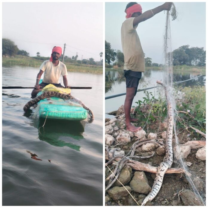 జాలర్ల వలలో చిక్కిన కొండచిలువ..