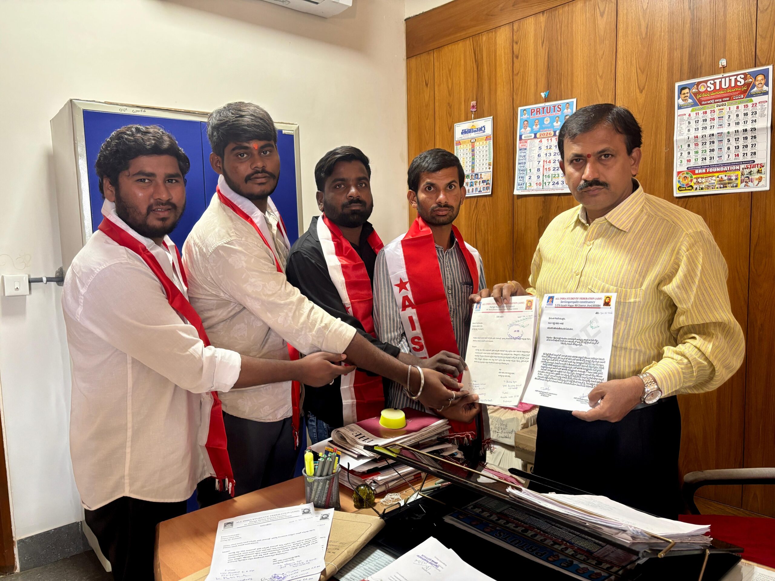 రంగారెడ్డి జిల్లా వివిధ మండలాలో వసంత పంచమి పేరుతో కార్పొరేట్, ప్రవేట్ పాఠశాలల్లో ప్రభుత్వ నిబంధనలకు విరుద్ధంగా ఆఫర్లతో అడ్మిషన్లు చేస్తున్న పాఠశాలల చర్యలు తీసుకోవాలని రంగారెడ్డి జిల్లా ఆడిషనల్ డీఈఓ పూర్ణచందర్ రావు గారికి వినతిపత్రం ఇవ్వడం జరిగింది. వివిధ మండలాలలో ప్రవేట్ కార్పొరేట్ పాఠశాలలో విద్యా వ్యాపారం దిశగా 2025-26 విద్యాసంవత్సరం గడవకముందుకే, వసంత పంచమి పేరుతో 2026-2027 విద్యా సంవత్సరంకి గాను నోఅడ్మిషన్ ఫీ, డిస్కౌంట్ల పేరుతో ముందస్తు అడ్మిషన్లు బహిరంగంగా ఇస్టాను రాజ్యాంగ చేపడుతున్నారు. అడ్మిషన్లు ఫీ, బుక్స్, డ్రెస్, టై, బెల్ట్ పేర్లతో లక్షలకు లక్షలు విద్యార్థుల తల్లిదండ్రుల నుండి విద్య పేరుతో వ్యాపారం చేస్తు ముందస్తు అడ్మిషన్లు చేస్తున్న ప్రైవేట్ కార్పొరేట్ పాఠశాలలపై చట్టపరమైన చర్యలు తీసుకోగలరని డిమాండ్ చేసారు. ఈ కార్యక్రమలో ఏఐఎస్ఎఫ్ అఖిల భారత విద్యార్థి సమైక్య రంగారెడ్డి జిల్లా ఆఫీస్ బేరర్స్ జిల్లా సహా కార్యదర్శి కె.శివ,జే. ధర్మ తేజ రంగారెడ్డి జిల్లా ఉపాధ్యక్షుడు పి.వినోద్ ఎగ్జిక్యూటివ్ నెంబర్ టీ. నితీష్ తదితరులు పాల్గొన్నారు.