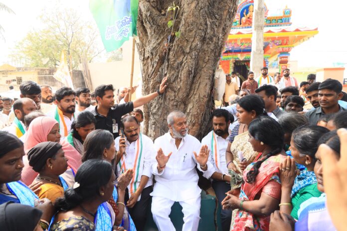 షాద్ నగర్, నేటిసత్యం, ఫిబ్రవరి, 6 :: రాష్ట్ర ఆరోగ్యశాఖ మంత్రి దామోదర రాజనర్సింహ ఎన్నికల ప్రచారము భాగములో ఓటర్లతో మాట ముచ్చట నిర్వహించారు, అమ్మా.. బాగున్నారా.. మా పాలన ఎలా ఉంది.. పథకాలు అందుతున్నాయా.. మీ ఎమ్మెల్యే పనితీరు ఎలా ఉంది.. అంటూ రాష్ట్ర వైద్య ఆరోగ్యశాఖ మంత్రి దామోదర రాజనర్సింహ ఓటర్లను పలకరించారు. 14వ వార్డు అభ్యర్థి అందెమోహన్ తరపున ఇంటింటి ప్రచారానికి వచ్చిన ఆయన స్థానిక భవాని మాత ఆలయం వద్ద రచ్చబండ ఏర్పాటు చేసి మహిళలతో మాట్లాడారు. సమస్యలు అడిగి తెలుసుకున్నారు. ప్రతి ఒక్కరికి ఆప్యాయంగా పలకరించారు, పలువీధుల్లో తిరిగి కాంగ్రెస్ పాలన ఎలా ఉందని అడిగి తెలుసుకున్నారు. తమ అభ్యర్థి అందెమోహన్ ను భారీ మెజారిటీతో గెలిపించాలని కోరారు. ఎమ్మెల్యే వీర్లపల్లి శంకర్, మాజీ ఎమ్మెల్యే ప్రతాపరెడ్డి తదితరులు ఆయన వెంట ఉన్నారు. ప్రచారం సందర్భంగా కాంగ్రెస్ పార్టీ అభ్యర్థులకు ఓటు వేసి మున్సిపాలిటీని చేతికి అందించాలని ఆయన ఓటర్లను కోరారు…