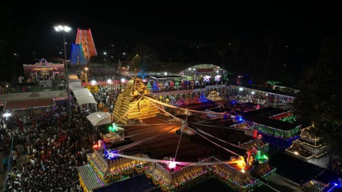 లింగోద్భవకాల మహారుద్రాభిషేకం ప్రారంభమైన వెంటనే పాగాలంకరణ ప్రారంభించబడుతుంది. బ్రహ్మోత్సవాలలో జరిగే ఈ పాగాలంకరణకు ఎంతో ప్రత్యేకత ఉంది. మన వివాహాలలో పెండ్లికుమారునికి తలపాగ చుట్టడం ఒక సంప్రదాయం. ఈ ఆచారమే శ్రీశైల ఆలయంలో పాగాలంకరణ పేరతో ఆనవాయితీగా కొనసాగుతోంది. ఈ పాగా స్వామివారి గర్భాలయ విమాన శిఖరం నుండి ముఖమండపంపై ఉండే నందులను అనుసంధానం చేస్తూ అలంకరించబడుతుంది. పాగాలను సమర్పించే భక్తులు నియమంతో భక్తిని మేళవించి సంవత్సరంలో 365 మూరల పొడవుతో ఈ పాగాను నేస్తారు. ఈ పాగాలను అలంకరించే వ్యక్తి దిగంబరుడై పాగాను అలంకరిస్తాడు. దిగంబరుడై పాగాను అలంకరించవలసి ఉన్నందున పాగాలంకరణ సమయంలో ఆలయంలో విద్యుత్ సరఫరాను నిలిపి వేస్తారు. చిమ్మచీకటిలో పాగాలంకరణ చేయడం ఎంతో నేర్పుతో కూడుకొన్న పని. యథావిధిగా రాత్రి గం.10.00ల నుండి ప్రకాశం జిల్లా, చీరాల మండలం, హస్తినాపుర గ్రామానికి చెందిన పృథ్వీ వెంకటేశ్వర్లు గారి తనయుడు పృథ్వీ సుబ్బారావు స్వయంగా తెచ్చిన పాగాతో పాటు ఇతర భక్తులు సమర్పించిన పాగాలను కూడా స్వామివారికి అలంకరిస్తాడు.