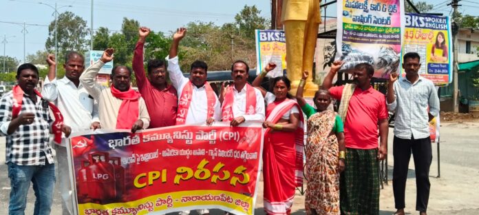 సిపిఐ నారాయణపేట జిల్లా సమితి ఆధ్వర్యంలో ఈరోజు ఇరాన్ పై చేస్తున్న యుద్ధానికి వ్యతిరేకంగా గ్యాస్ ధరల పెంపునకు నిరసనగా అంబేద్కర్ చౌరస్తాలో ముందు ధర్నా చేసి .